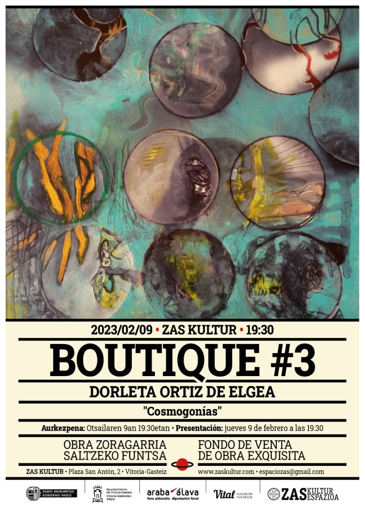 Zas Kultur presenta en su sede de la plaza San Antón la tercera edición de “La boutique”, un proyecto destinado a incentivar la venta de obras de arte contemporáneo de creadores locales. Bajo el objetivo de visibilizar el trabajo de las y los artistas Kilómetro 0 y dar respuesta a la escasez de equipamientos en nuestra ciudad dedicados a la venta de arte, “La boutique” quiere seguir apostando por aportar su granito de arena en aras de democratizar la adquisición de obra.