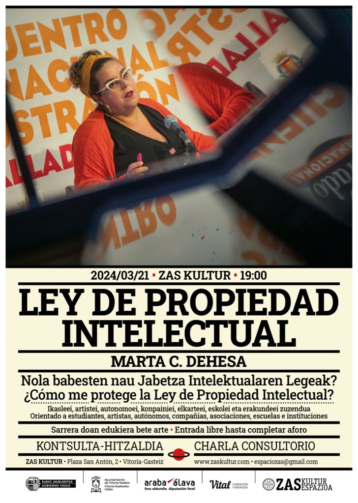Datorren ostegunean, martxoak 21, 19:00etan, Zas Kulturren, arteari, autoriari eta arteen sektoreko eskubideei buruz hitz egitera gonbidatzen zaituztegu. Marta C. Dehesaren hitzaldi honetan, gure lana legez nola definitu, nola babestu eta gure sormen-sektorearen barruan etikaz eta jardunbide egokiak nola jokatu aztertuko dugu.
