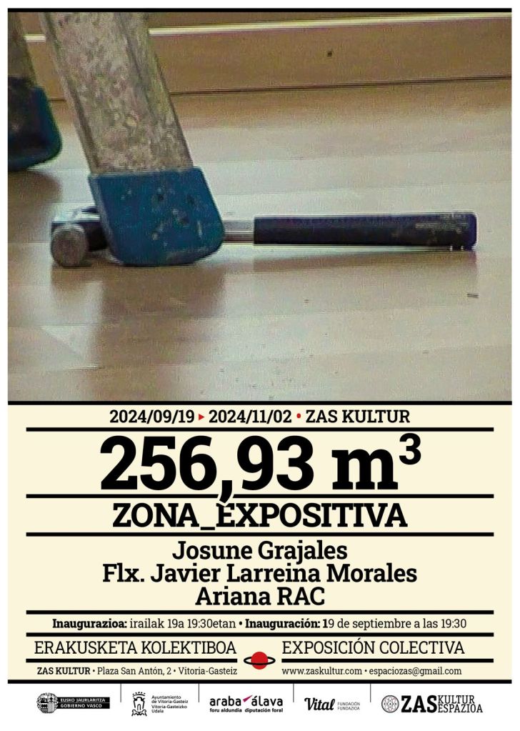 Hurrengo ostegunean irailak 19, 19.30etan Zas kultur bere ateak berriz irekitzen ditu Zona_256,93 m3_expositiva erakusketarekin. Josune Grajales, Flx. Javier Larreina Morales eta Ariana RAC gaztearen txokotik urtebete geroago bilduko dira, oraingoan espazio bakarra partekatzeko. Artista hauek gogoeta bat proposatzen dute non erakusketa beste leku batzuei eusteko eta gogora ekartzeko gai den.