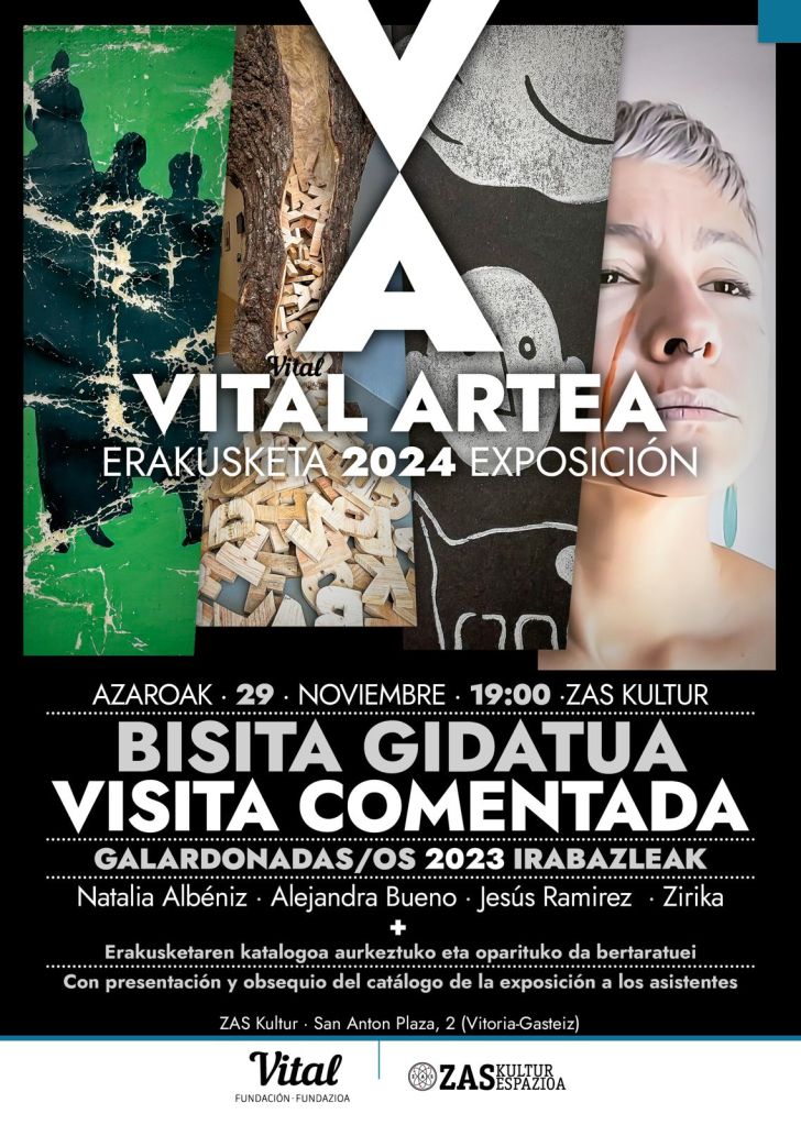 Ostiral honetan, azaroaren 29an, 19:00etan, Zas Kultur-ek bisita gidatua egingo du Vital 2023ko Arte Vital Lehiaketako artista irabazleen erakusketara: Natalia Albeniz, Alejandra Bueno, Jesus Ramirez eta Zirika-ren eskutik. Ekitaldian zehar, artistak bertan izango dira beren lanen xehetasunak partekatzeko eta ikusleen galderei erantzuteko.