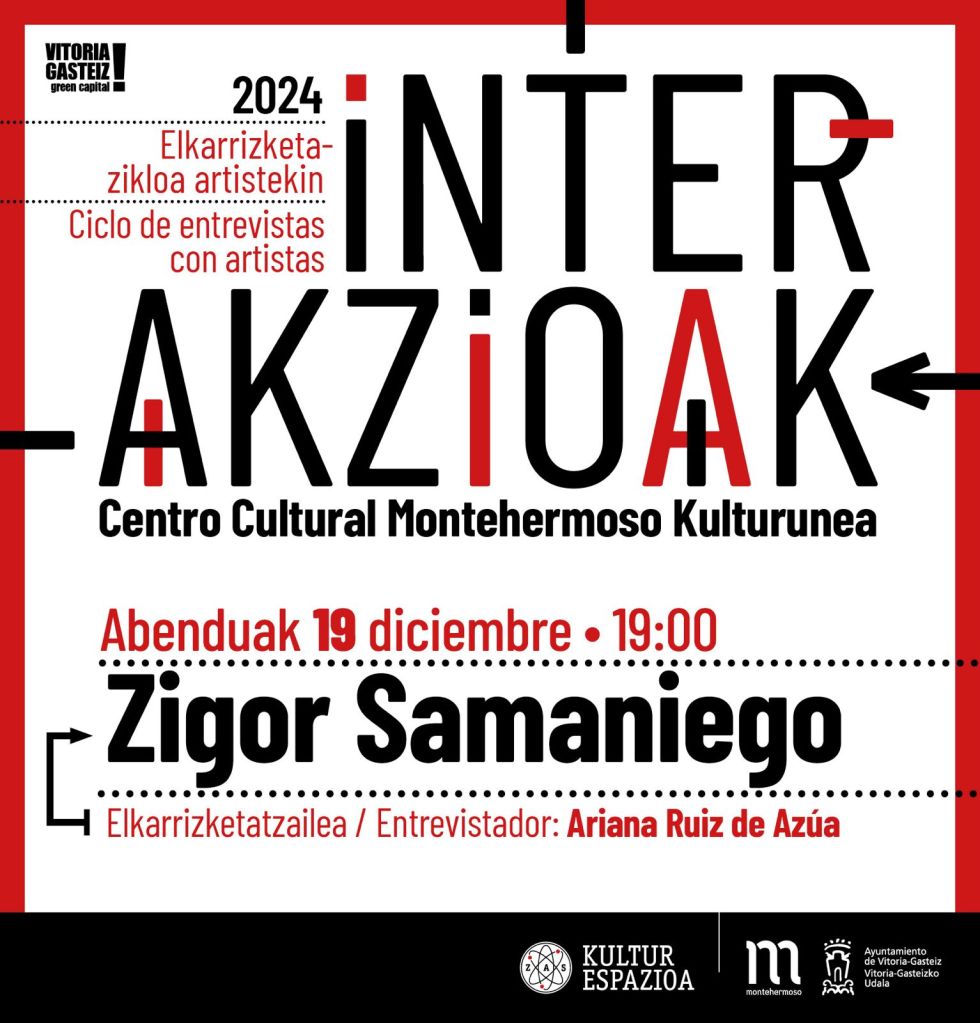 Interakzioak/Interacciones, Zas Kulturalek Montehermoso Kulturunearekin elkarlanean antolatua, artisten eta ikusleen arteko topaketa sustatzen duen zikloa da, sormen prozesuak aztertuz eta arte garaikidera hurbiltzeko modu berriak sustatuz. Zikloaren azken hitzaldi honek geruza berri bat ematen dio Interakzioak zikloari, artista digital bat baitauka, non 3D diseinuari eta artearen eta teknologiaren arteko elkargunean duen zereginari buruz gehiago ezagutuko dugun.