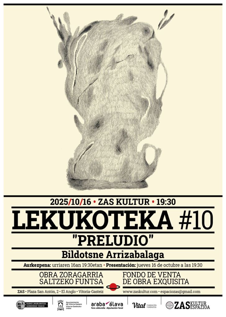 Lekukotekak pieza berri bat txertatzen du tokiko artisten “salmenta bikaina” lan-funtsean. Ostegunean, urriaren 16an, 19:30ean, Bildotsne Arrizabalaga artistak bere Preludio marrazkia aurkeztuko du Zas Kultur-en; arkatzez egina da, paper gainean (42 x 52 cm). Lana funtsaren parte izango da eta eskuragarri geratuko da Lekukotekaren markoan, Zas Kulturrek bultzatutako ekimena, inguruko sortzaileen lanak zaindutako zuzeneko salmenta-formatuan biltzen dituena, bildumagintza lokala sustatzeko.