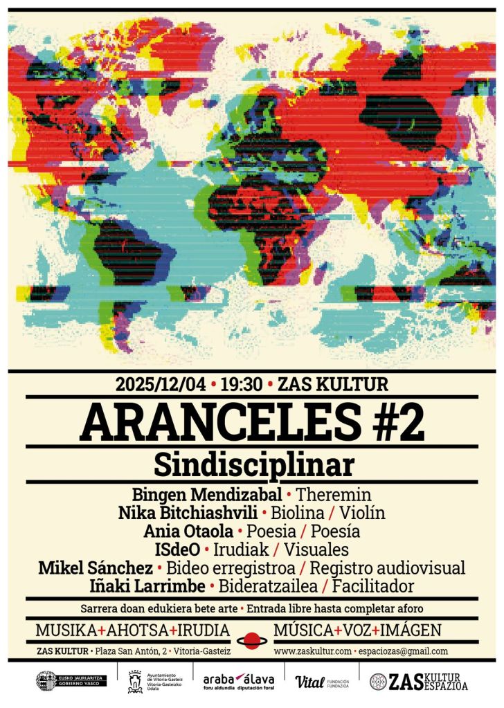 Bigarren saio honen izenburuak, Aranceles #2, zikloa ireki zuen ideiara itzultzen da, urrats bat harago eramateko: muga, mugarri eta ordain-sarri sinbolikoak, praktika eta munduak bereizten dituztenak. Lehen ekintzan gurutzatze hori inprobisaziotik ukitu bazen, bigarren honetan taldeak bere burua probatu duen lasaitasuna dago. Gurutzatzea ez da esperimentu bat gehiago: bere mapa marrazten hasten den lurralde bat da.