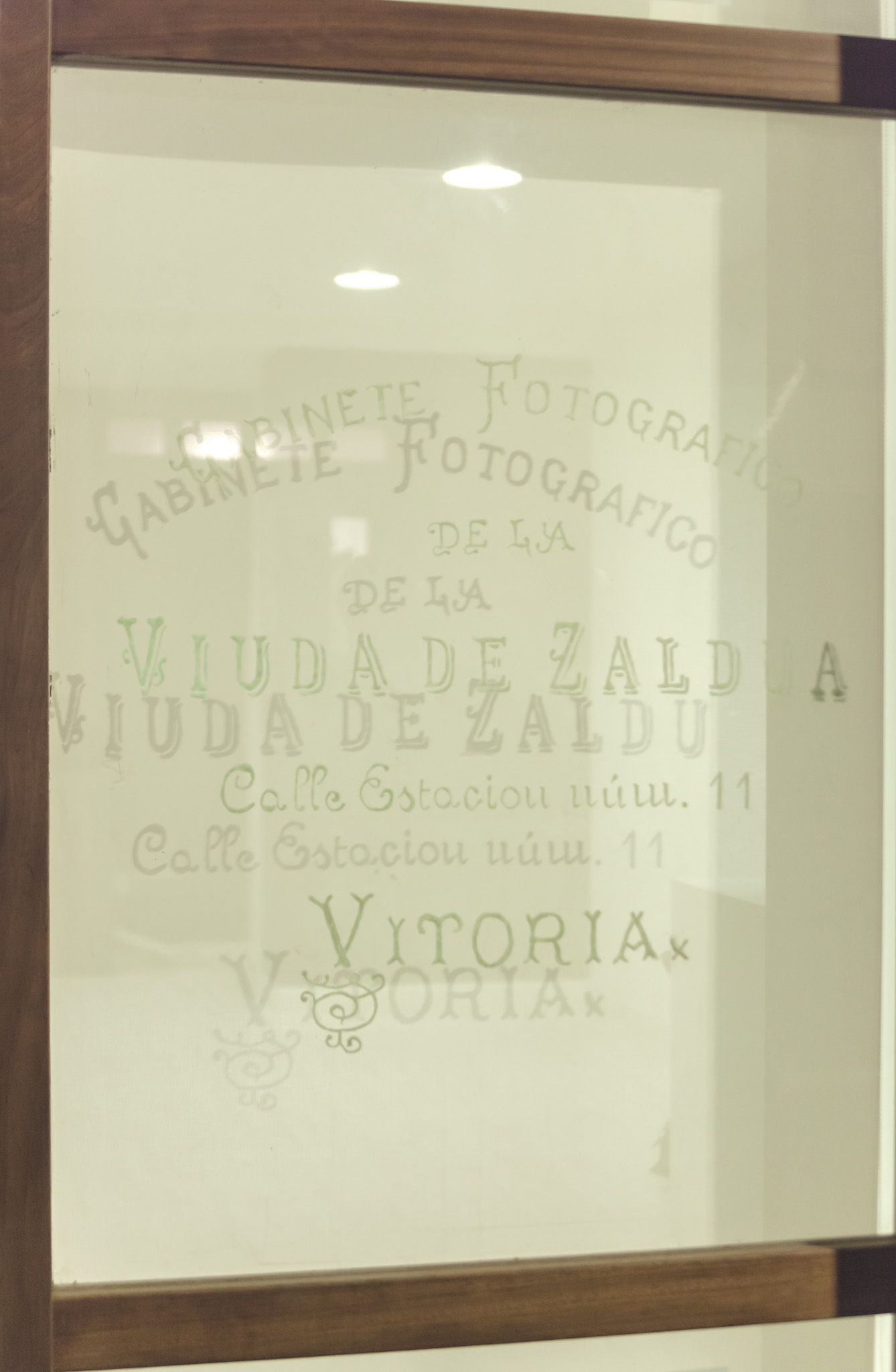 Zaldua, Basilia regentó el estudio fotográfico bajo la marca «Viuda de Zaldúa». Durante el siglo XIX era muy común añadir rótulos publicitarios pintados en los escaparates, tal y como se propone hacer en ZAS.